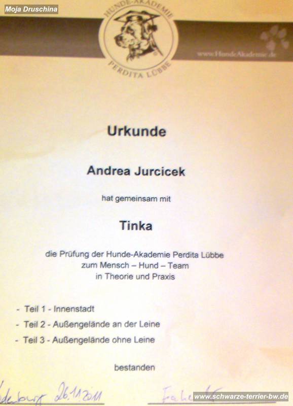 Andrea und Catinka's Urkunde